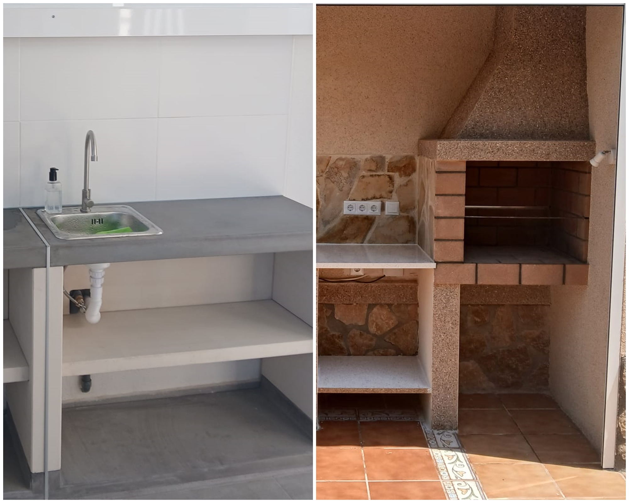 Es una estructura fija (de ladrillo y cemento). Integra una parrilla o barbacoa y un fregadero con encimera para preparar alimentos.